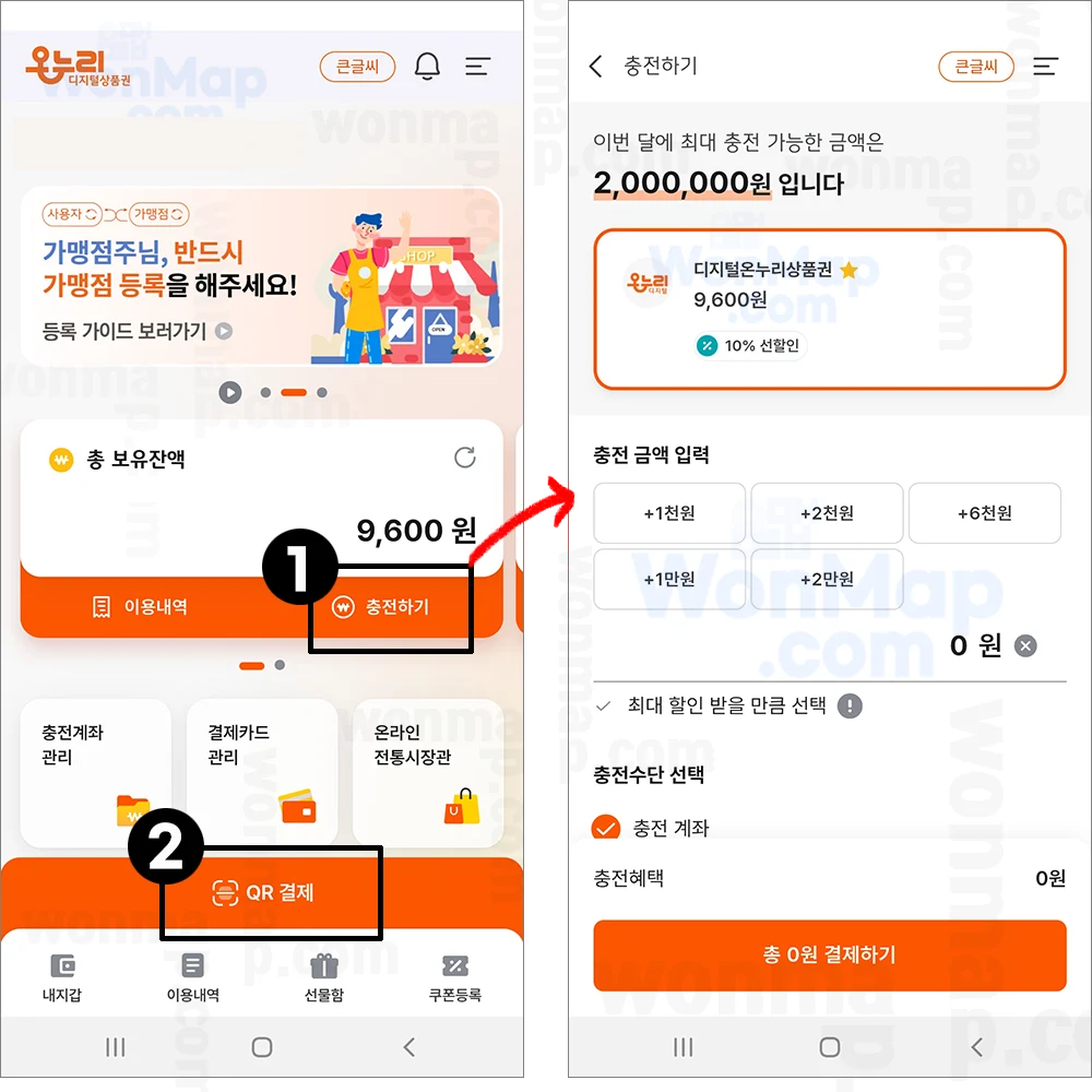 - 조건: 최소 1만 원 이상 결제, 보유액 200만 원 이하