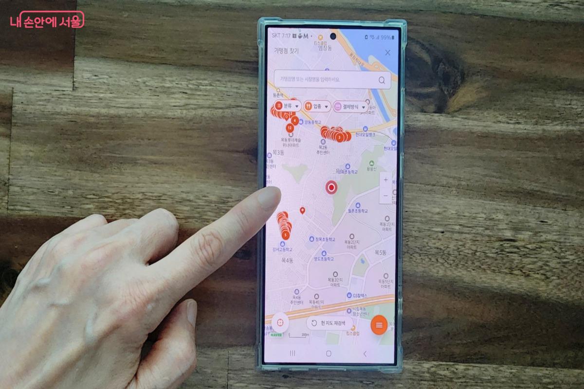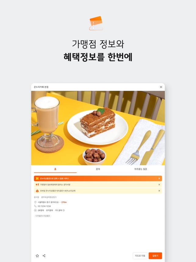 - 앱 내 가맹점 찾기 기능 활용 (GPS 기반 검색)
