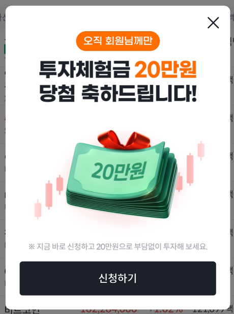 - 신청 완료 후 계정에 20만원 투자체험금 자동 지급