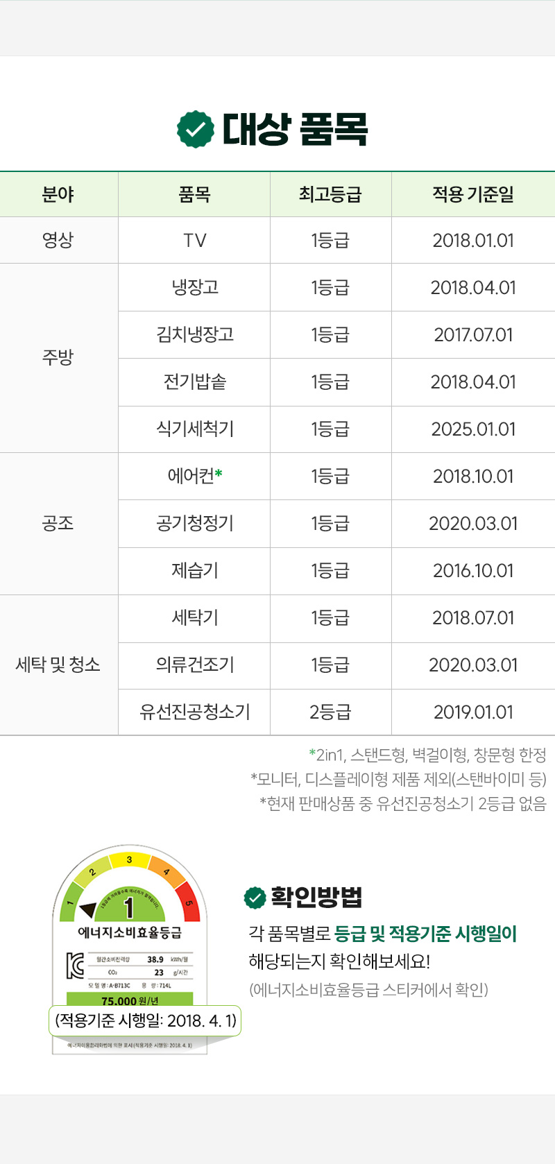 | 6 | 에어컨 | 에너지효율 1등급 | 시스템/이동식 제외 |