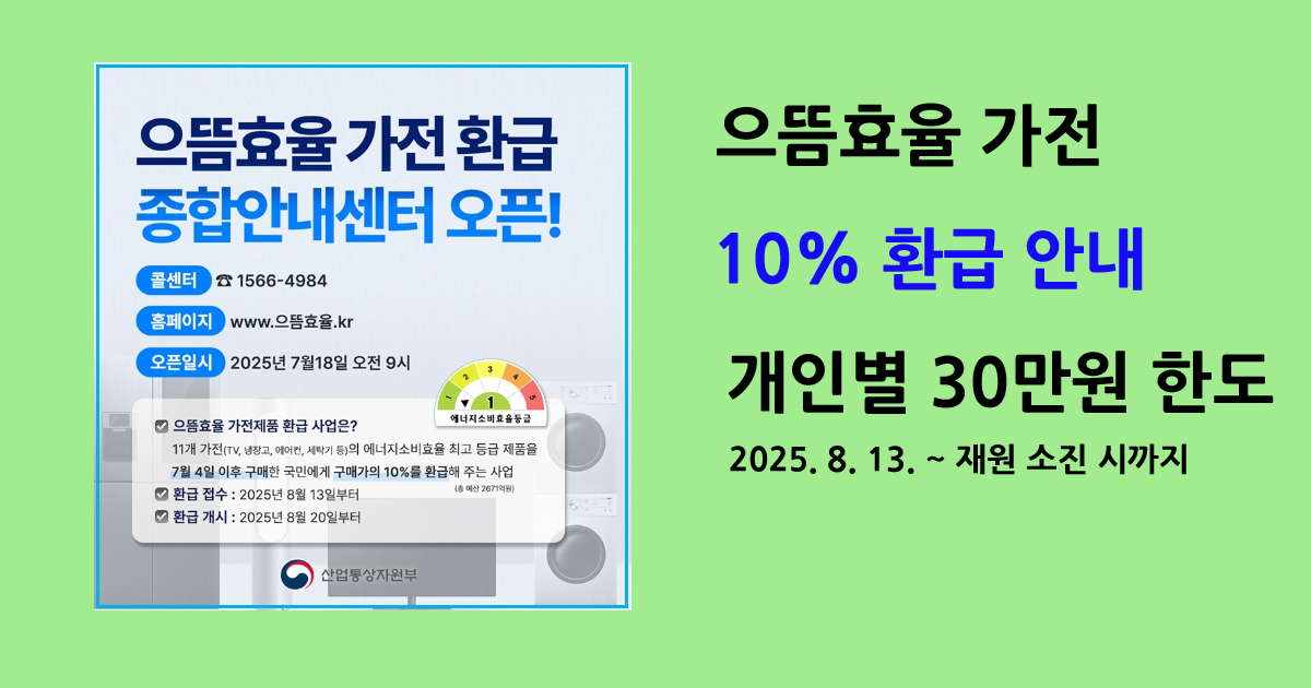으뜸효율가전 환급 신청방법 사업은 2025년 정부가 마련한 최고의 가전 구매 지원 정책입니다. 최대 30만원의 현금 환급과 함께 에너지 효율적인 가전을 사용하여 전기요금까지 절약할 수 있는 일석이조의 기회입니다.