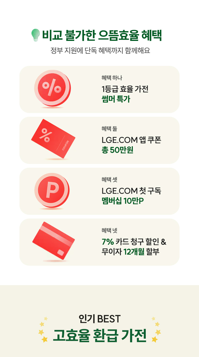 고물가 시대에 이런 기회는 흔치 않습니다. 특히 으뜸효율가전 환급 신청방법이 선착순 방식이므로 늦으면 혜택을 받을 수 없습니다.