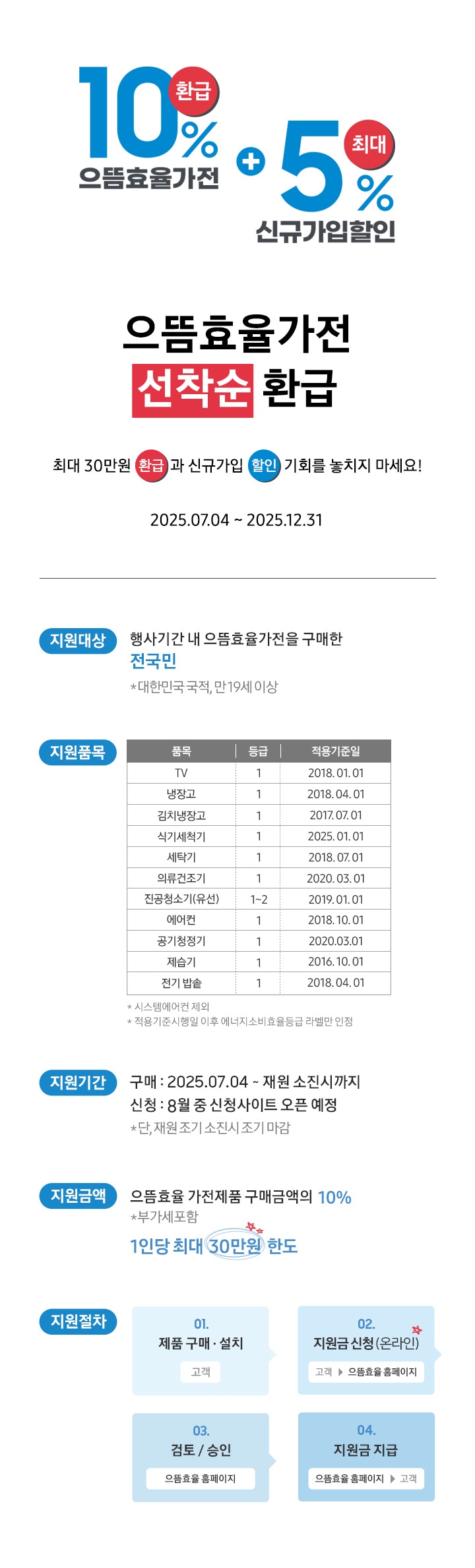 - 대상: 2025년 1등급 가전 구매자, 만 19세 이상